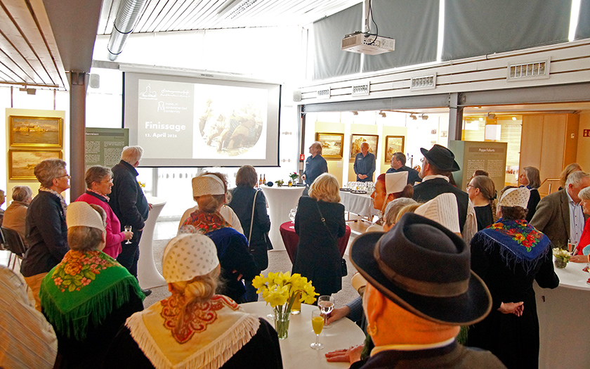 Mehr als 12.500 Besucherinnen und Besucher haben die einjährige Ausstellung zum Norderneyer Seemaler Poppe Folkerts im Norderneyer Bademuseum besucht. Knapp 400 von ihnen nahmen zudem an den 30 Führungen mit Hayo Moroni teil, dem Enkel des Künstlers. Das Museum feierte gemeinsam mit Vertretern der Poppe-Folkerts-Stiftung und der Fördergemeinschaft Poppe-Folkerts-Museum sowie weiteren Gästen den letzten Ausstellungstag mit einer Finissage. Bei Häppchen und Sekt ließen die Anwesenden ein überaus erfolgreiches Projekt Revue passieren. „Schade, dass es schon endet“, fand die Emder Kunsthistorikerin Dr. Annette Kanzenbach, die bereits zur Eröffnung im April 2025 eine Einführung in das Werk des Seemalers präsentiert hatte und am Sonntag erneut angereist war.