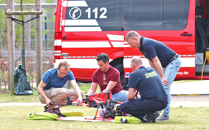 Die Möglichkeiten der Drohne für die Einsatzbereitschaft der Feuerwehr sind vielfältig: So kann sie aus der Luft Bereiche erkunden, die für Einsatzkräfte schwer erreichbar sind: etwa im Gelände, an hohen und verwinkelten oder schlecht zugänglichen Gebäuden sowie auf Dächern nach Bränden. Mit der dazugehörigen Wärmebildkamera lassen sich zudem Glutnester aufspüren oder vermisste Personen auch bei Dunkelheit aufspüren: Sie kommt dorthin, wo Fahrzeuge an ihre Grenzen stoßen und kann innerhalb weniger Sekunden wertvolle Informationen für den Feuerwehreinsatz liefern. Denn die von der Drohne aufgenommenen Bilder werden direkt an den Einsatzleitwagen übertragen.