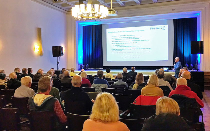 Rabenau gab im Conversationshaus vor rund 60 Norderneyerinnen und Norderneyern einen detaillierten Überblick über den Umstellungsprozess.