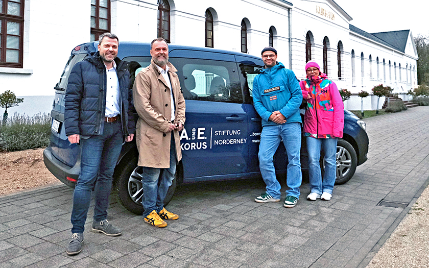Das benötigte Lieferfahrzeug für das Versorgungsangebot Essen auf Rädern ist startklar: Dank einer Spende der A. und E. Korus-Stiftung über 23.000 Euro kann der Sozialdienstleister Hol di toi mit der Übernahme künftig warme Mahlzeiten sicher und klimafreundlich auf der Insel ausliefern. Das Elektroauto wird künftig für den Dienst Essen auf Rädern eingesetzt und symbolisiert zugleich, wie groß das Engagement der Stiftung für Norderney ist. Die Parkraumgesellschaft hat zudem einen Ladeparkplatz kostenfrei zur Verfügung gestellt. „Da ist wieder mal die Korusstiftung mit im Boot, wie schon bei vielen anderen Projekten. Das hat uns sehr gefreut, dass wir kurzfristig eine Einigung hatten und die Korus-Stiftung gesagt hat: „Das kriegen wir hin“, sagte Bürgermeister Frank Ulrichs bei der Übergabe.