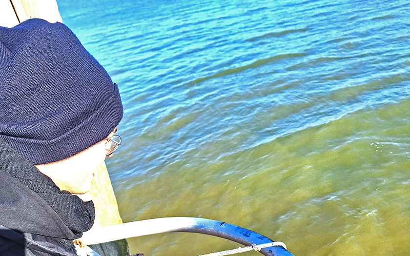 Für die Proben musste das Timing stimmen. „Vor unseren Fahrten auf die Insel mussten wir immer schauen, wann Hochwasser ist. Da die Probe auf Norderney eine halbe Stunde vor bis fünf Minuten nach Hochwasser genommen wird, mussten wir unsere Inselaufenthalte passend zum Fahrplan der Fähre gut koordinieren“, sagt Mia. Am Hafen angekommen, hieß es kräftig ziehen: „Dafür braucht man ein bisschen Kraft und viel Geschick. Man muss aufpassen, dass beim Hochziehen nicht zu viel Wasser wieder aus dem Eimer schwappt. Auch deshalb haben wir manchmal schon Regenhosen an“, ergänzt Phil.