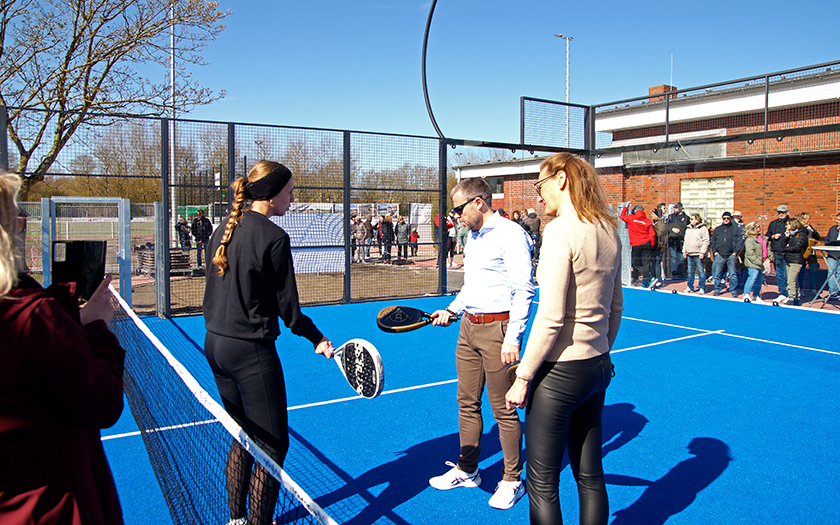 Schon vor der Eröffnung hatten sich zahlreiche Kinder auf dem Multicourt zum Spielen eingefunden. Auf dem Padelcourt lud eine extra angereiste Trainerin alle Interessierten ein, die ersten Schläge zu machen. Wer sich nicht selbst sportlich betätigen wollte, fand eine Stärkung bei Bratwurst und Getränken.
