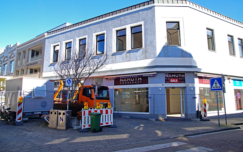 Ein neues Eckhaus soll entstehen in der Norderneyer Fußgängerzone, Poststraße 2, Ecke Jann-Berghaus-Straße. Es wird das bestehende Gebäude ersetzen, das „nicht mehr sanierungsfähig“ ist, wie die Eigentümerin, die Sparkasse Aurich-Norden, mitteilt. Der Abriss des Hauses erfolgt noch innerhalb der aktuellen Bausaison, im Anschluss wird ein genauer Termin für den Baustart im Winterhalbjahr 2026/27 festgelegt. Schon jetzt ist der entsprechende Gehweg auf der nördlichen Jann-Berghaus-Straße für Passanten gesperrt. „Das neue Gebäude wurde von dem Oldenburger Büro Gbg-Architekten entworfen, die Planung erfolgte in enger Abstimmung mit dem Landkreis Aurich und der Baubehörde auf Norderney“, heißt es in der Mitteilung. Die Pläne für den Neubau sehen drei Gewerbeeinheiten im Erdgeschoss sowie elf Wohnungen in den Obergeschossen vor, die jeweils über eine Loggia oder Dachterrasse verfügen: „Im Gebäude entsteht mehr Dauerwohnraum für Insulaner als zuvor im Altbau vorhanden war, ergänzend entstehen Ferienwohnungen.“ Das Haus soll mit einer Wärmepumpe beheizt werden und über eine Photovoltaikanlage verfügen. Städtebaulich werde die neue Fassade die Straßenecke Poststraße / Jann-Berghaus-Straße aufwerten und das Gebäude nahtlos an die benachbarten Bauwerke anschließen, sind die Bauherren überzeugt.