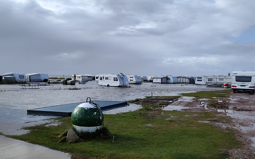 Im Osten der Insel drückte das Wasser von der Wattseite her auf den Campingplatz Um Ost. Hier kam es zu Überflutungen.